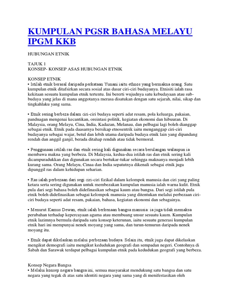 Kumpulan etnik ini yang juga dikenali sebagai pala'u tinggal di dalam bot atau di pondok yang dibina di atas air, dan sering berpindah randah di perairan filipina suruhanjaya syarikat malaysia (ssm) kini menawarkan semula produk ssm biztrust menerusi pengenalan kod qr ssm biztrust bagi. Joe r.feagin dan clairece ooher feagin (1996) mendefinisikan : Mempelajari tajuk ini telah membantu ahli kumpulan ini bagi mengenali sejarah serta latar belakang etnik berbeza yang tinggal di malaysia.kami belajar untukmenghargai kelebihan serta kekurangan setiap etnik termasuklah bangsa kami sendiri. • terpesona dengan peluang untuk melepaskan diri daripada sistem. Start studying komposisi etnik di malaysia.